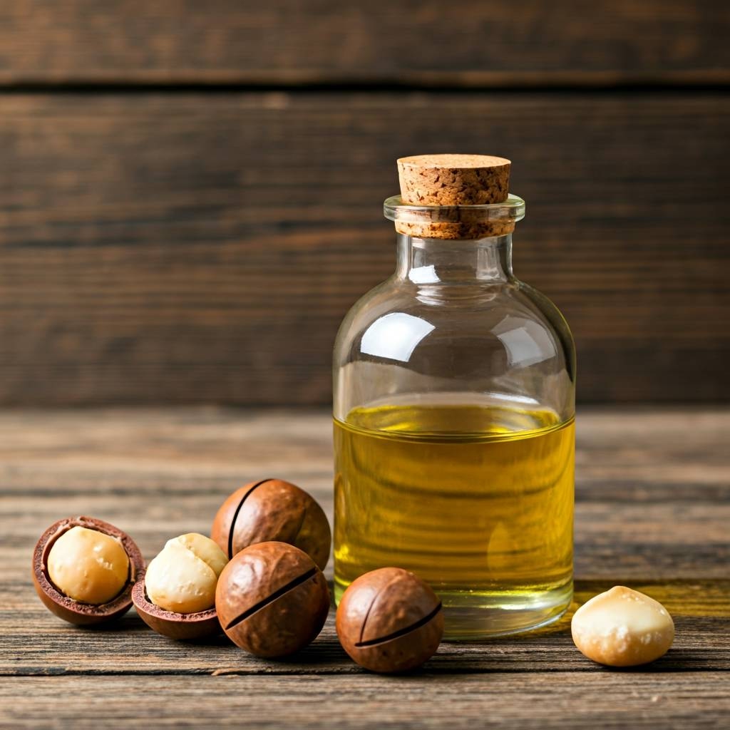 Macadamianußöl enthält 25 % Palmitoleinfettsäure, die in der Kosmetik sehr geschätzt wird. Es hat eine sehr gute Verteilbarkeit, zieht sehr schnell in die Haut ein und wirkt regenerierend. Einsatzgebiet: Haut – und Massageöle, Emulsionen bei trockener schuppiger und empfindlicher Haut, spröden und brüchigen Haaren. Mit seiner straffenden Wirkung ist das Öl ein wertvolles Anti-Falten-Mittel, das gut in die Haut eindringt, sie glättet, pflegt und nährt.